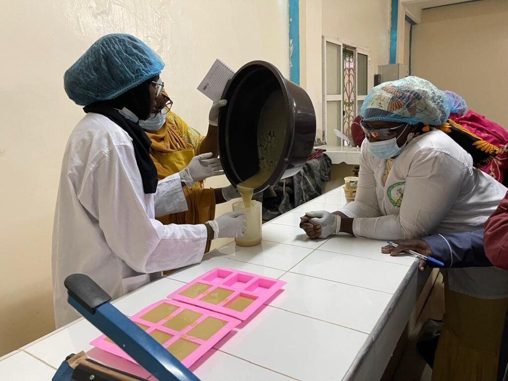 Les participantes ont été initiées au processus de fabrication du savon artisanal, notamment :